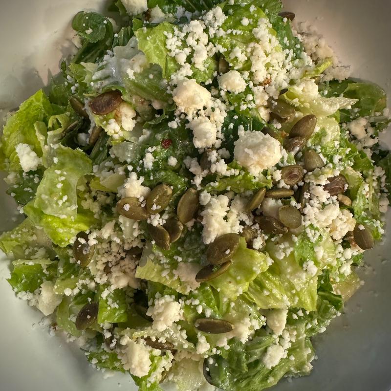 Chopped fresh romaine, house caesar dressing, chili pepitas, queso fresco, chopped charred sourdough croutons